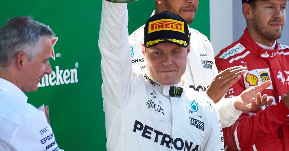 Com efeito, o finlandês aproveitara integralmente sua pole para largar muito bem e logo estabelecer uma vantagem razoavelmente confortável sobre Hamilton, firme no segundo lugar. E Vettel, com a Ferrari, estava então em terceiro, a cerca de 8 segundos do líder. Mas quando Hamilton decidiu lutar pela vitória, ficou mais duas voltas na pista após o pit-stop de Bottas, e começou a dar o máximo, esta vantagem dos dois carros da Mercedes sobre Vettel subiu rapidamente, até chegar perto dos 20 segundos.
