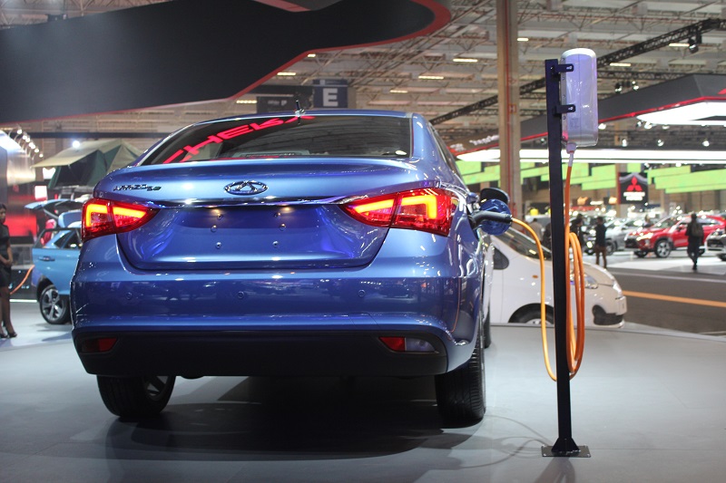 A Chery mostrou também o novo Arrizo 5, o EQ( elétrico ). e o Tiggo 5x e Tiggo7, que serão produzidos em Anápolis e terão motor turbo.