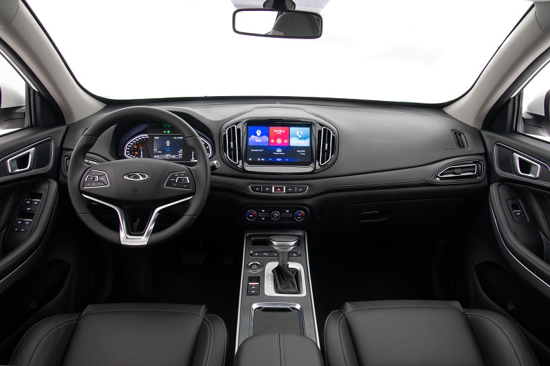 A suspensão, naturalmente do tipo independente nas quatro rodas, conta com McPherson na dianteira e Multilink na traseira, itens que justificam o bom comportamento dinâmico do Tiggo7, tanto quando equipado com rodas aro 17 e tala 6,5 (versão T) como com rodas aro 18 e tala 7,5 (versão TXS). E a frenagem, com discos ventilados na dianyeira e sólidos na traseira, ocorre em espaços normais, sem desvios de trajetória, graças à presença de ABS e à distribuição eletrônica de pressão. O freio de estacionamento é do tipo elétrico e conta com o Auto Hold para maior segurança.