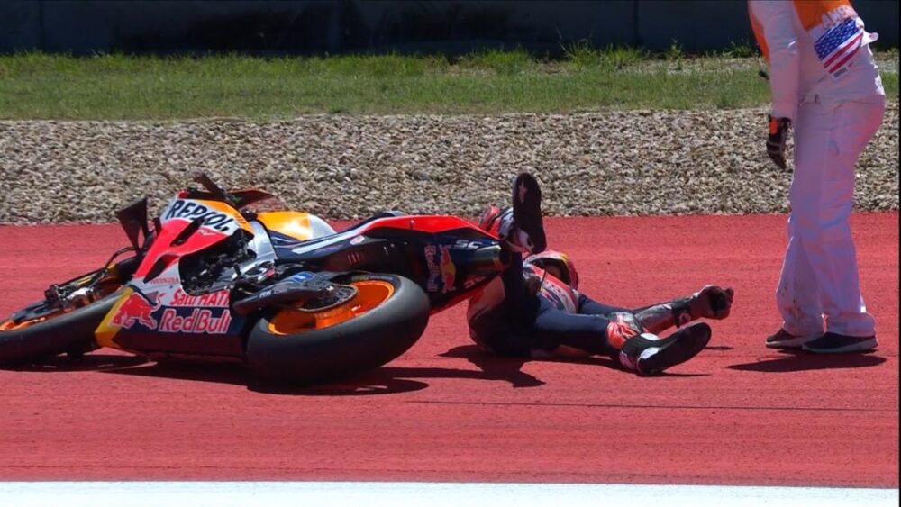 O circuito de Austin, no Texas, parecia, até domingo, o reinado indiscutível do campeonissimo Marc Marquez que ainda deste feita tinha feito a pole position e assumira logo a liderança da corrida, Mas, talvez por excesso de confiança, na 9.a volta, quando já tinha nada menos que 3″8 de vantagem sobre Valentino Rossi, caiu e, na tentativa de voltar à prova caiu de novo e teve que abandonar.
