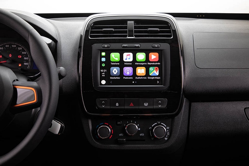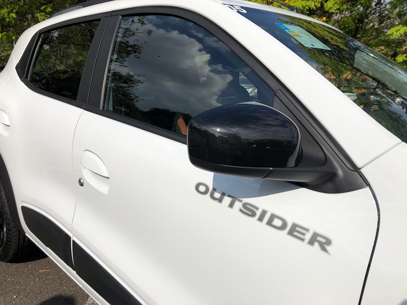Chegou o Kwid Outsider, a versão topo da linha, que agora vem com vários itens de série como quatro air-bags, duas fixações Isofix para cadeirinhas infantis e alertas visual e sonoro, além do pré-tensionador dos cintos de segurança dianteiros, moldura lateral, capa preta nos espelhos, barras de teto, moldura para os faróis de milha, central multimídia (única do segmento) com tecnologia Android Auto e Apple Carplay, que permite usar Spotify, Waze, Google Maps (Android Auto) e reproduzir áudios de Whatsapp na tela de sete polegadas touchscreen capacitiva, com melhor precisão do toque.