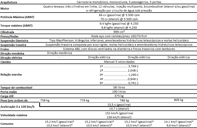 Abastecido com etanol, rende 70 cv de potência a 5.500 rpm e torque de 9,8 kgfm a 4.250 rpm. Com gasolina, são 66 cv a 5.500 rpm e 9,4 kgfm a 4.250 rpm.