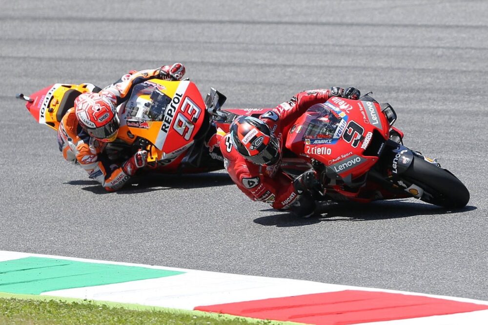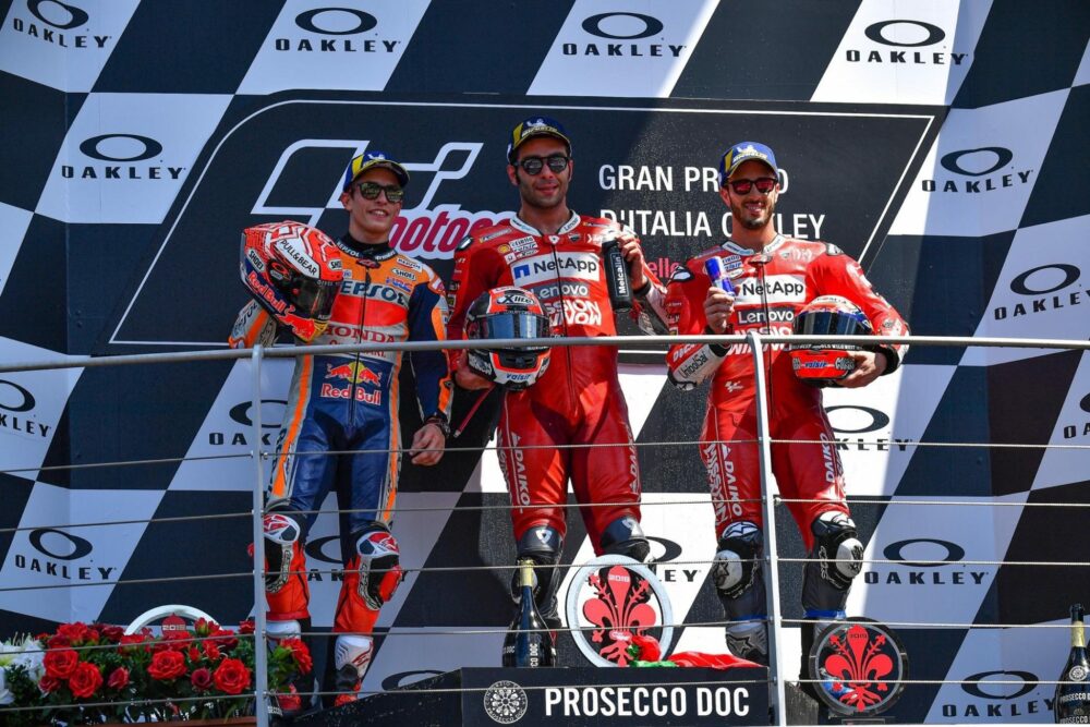 O GP da Itália, disputado no tradicional circuito de Mugello, perto de Firenze, apresentou dois vencedores : Petrucci (Ducati) e Marquez (Honda). Não que os dois tenham cruzado a linha de chegada rigorosamente emparelhados, embora a distância entre ambos tenha sido mínima, mas pelos efeitos que primeiro e segundo lugares tiveram na economia geral do mundial.