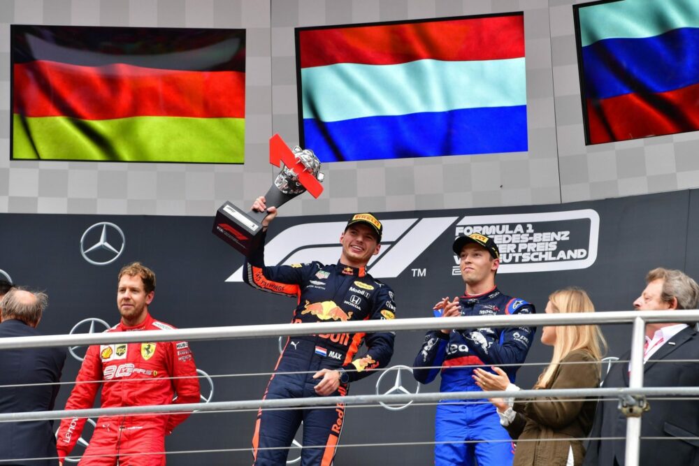 A chuva acabou sendo a grande protagonista do GP da Alemanha de F1, disputado no circuito de Hockenheim e ganho – merecidamente – por Verstappen com sua Red Bull, seguido por Vettel com Ferrari e Kvyat com Toro Rosso.