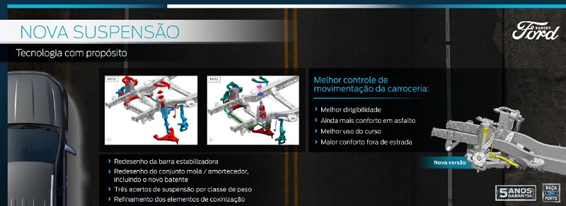 Para esse produto foram feitos testes em condições extremas de temperaturas, entre -29°C a 50°C, com 90% de umidade, a 4.000 metros de altitude, mais de 15 mil horas de testes de rodagem e mais de 1,7 milhão de km rodados. Tudo isso para lançar globalmente a picape com maior capacidade de imersão do segmento (800mm),nova suspensão com redesenho da barra estabilizadora, sistema anticapotamento, com controle adaptativo de carga, piloto automático adaptativo, sistema de permanência em faixa, direção elétrica, diferencial traseiro blocante eletrônico, 7 airbags, SYNC3 com navegação e comandos de voz.