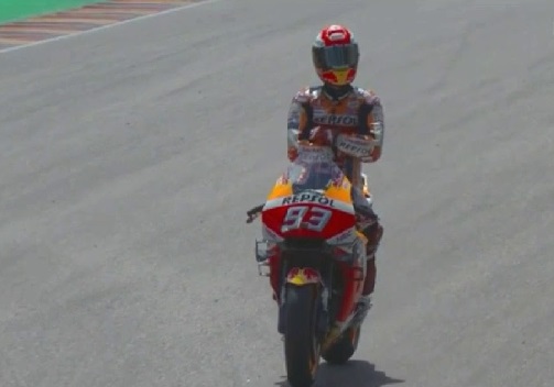 O espanhol Marc Marquez é indiscutivelmente o “rei”do circuito alemão de Sachsenring onde domingo venceu pela décima vez. E o fez bem a seu estilo : largou na ponta, foi ampliando até 3 segundos sua vantagem, daí para frente, embora sem correr riscos desnecessários, incrementou essa vantagem e cruzou a linha de chegada com os braços cruzados, sem segurar o guidão da moto!